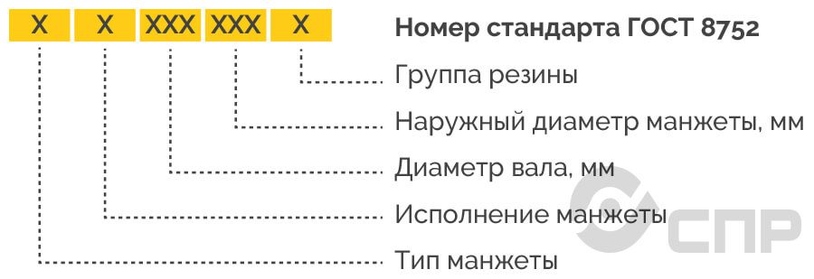 В соответствии с ГОСТ манжеты армированные маркируются следующим образом: